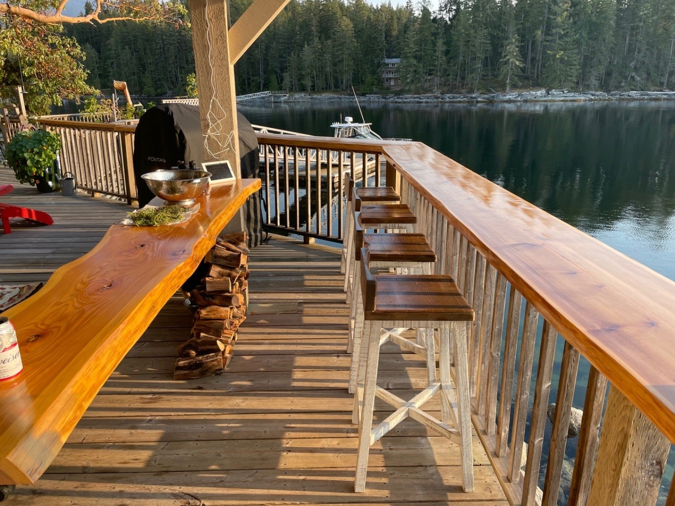 Spot prawns are abundant within 2 minutes by boat from the dock - floats for prawn traps are visible from the cottage! Additionally, excellent Salmon fishing is a stone's throw away. Victory Island also has naturally, well established, sustainable oyster and clam beds for sumptuous enjoyment . Orca whales and humpback whales frequent the area, and can often be spotted right from magnificent deck.