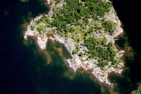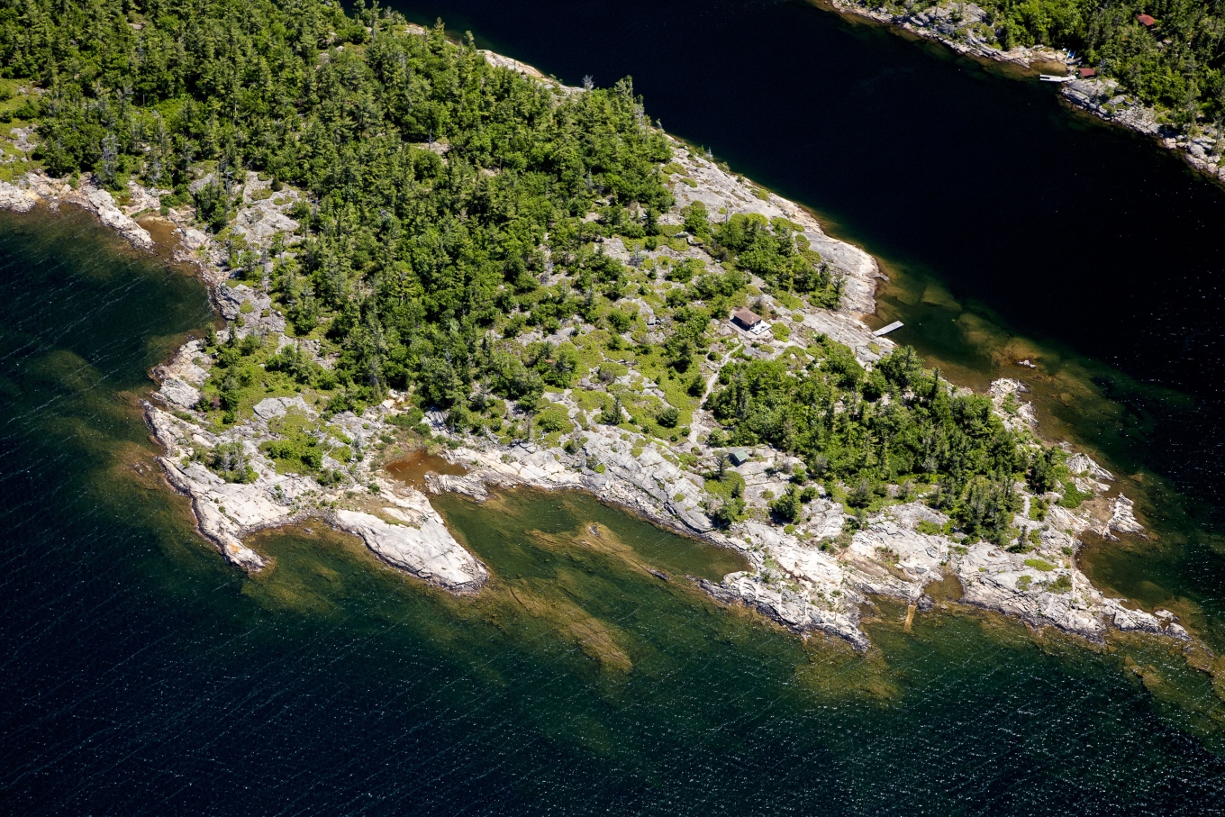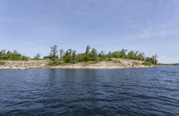 With its sun-dappled granite islands, protected harbors, and warm community spirit, San Souci has become one of the most popular regions on the eastern shore of Georgian Bay, Ontario. In the heart of this cottage community, which attracts residents and visitors from around the world, Ardwell Island provides the ideal setting to establish a summer hideaway or three-season home. Eleven acres are currently available on the southern tip of the island with 2,490 feet of waterfront on three sides, guaranteeing spectacular unobstructed views to the west and south across the open water. Ardwell Island’s Precambrian granite shore slopes gently into the bay, with sheltered water on the leeward side forming a natural harbor.