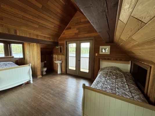 Every detail of this home reflects a love of nature and a passion for design. Outside, enjoy your own private, gently sloping sandy beach — ideal for swimming, lounging, or evening campfires. The west-facing exposure delivers unforgettable sunsets over the water, night after night. Whether you’re looking for a quiet personal escape, a summer retreat, or a one-of-a-kind investment, this property checks every box.