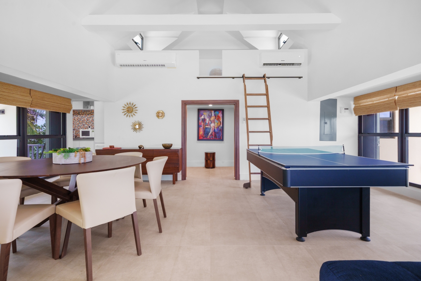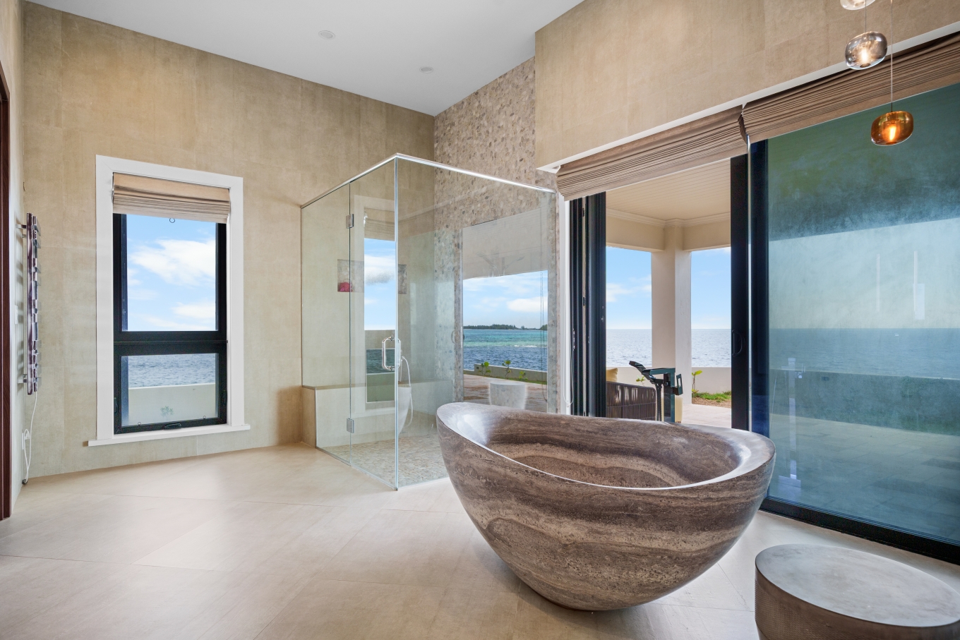 Indulge in al fresco entertainment and relaxation on the various covered outdoor terraces and porches, perfectly positioned amidst the tranquil backdrop of the crystal-clear ocean vistas, mere steps away from several sandy beaches.