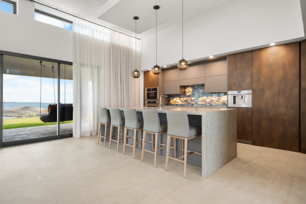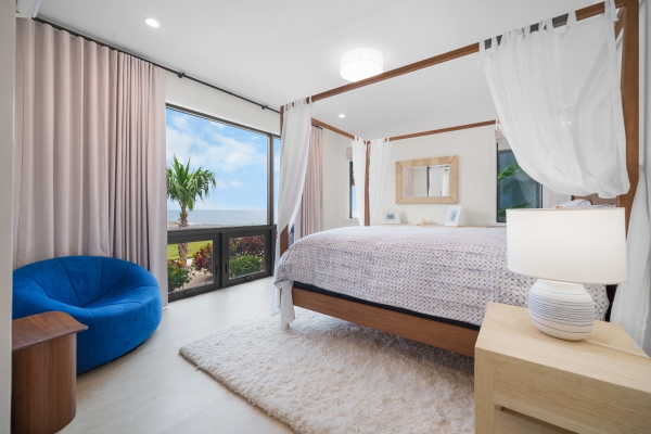 The newly constructed modern Main House spans an impressive 7,200 square feet and features an inviting open-plan living and dining room, along with four beautifully appointed bedrooms. Every room in the home boasts awe-inspiring ocean views through expansive glass windows and doors, providing an immersive experience with nature's beauty at every turn.