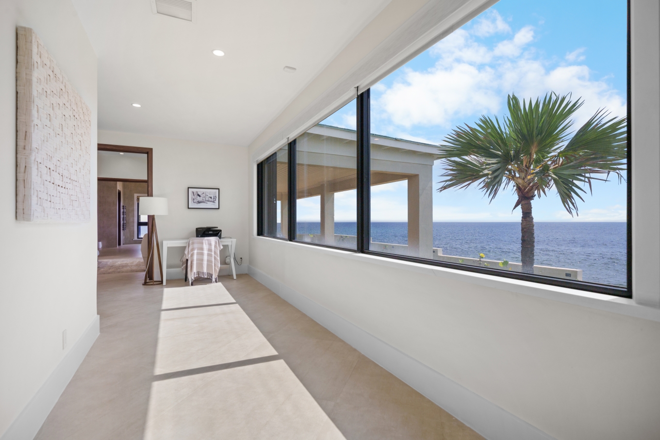 The private Guest House, spanning approximately 2,800 sq. ft., is comprised of a comfortable living and dining room, 3 guest rooms and also features a full kitchen, loft and laundry area. The oceanfront gym, plunge pool, and meditation deck contribute to the overall meticulous design of this haven.