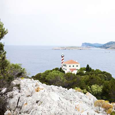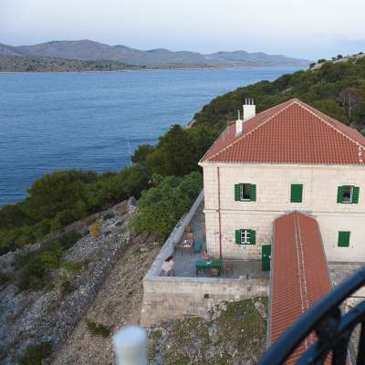 Built in 1876, the Tajer Lighthouse is a large stone building connected to a monumental iron tower by a 200-foot long corridor. The spacious building yard covers around 1200 square feet, and both apartments offer splendid panoramic views of the Kornati islands, Long Island, and the immense open sea.