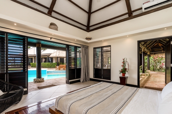 Currently there is one luxury Villa, comprising open plan kitchen, dining and lounge area opening out on to the patio and pool area. To one side is a standalone primary bedroom bure with large bathroom and walk-in dressing room leading out to the patio and pool area. On the other side of the central bure are two more bedrooms with a shared bathroom, again opening out on to the patio and pool area. The villa is fully furnished.