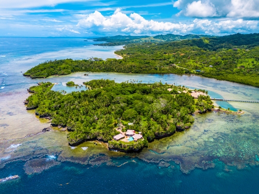 Wavi Island is a 27 acre (more or less) freehold island a few minutes drive from Savusavu Airport on Fiji's largest northern island, Vanua Levu - an hour's flight from Nadi International Airport. The beauty of this unique location is that the island is connected by a 450 metre long low bridge to the mainland - so you get all the benefits of island living without the nuisance of water taxi and helicopter transfers.