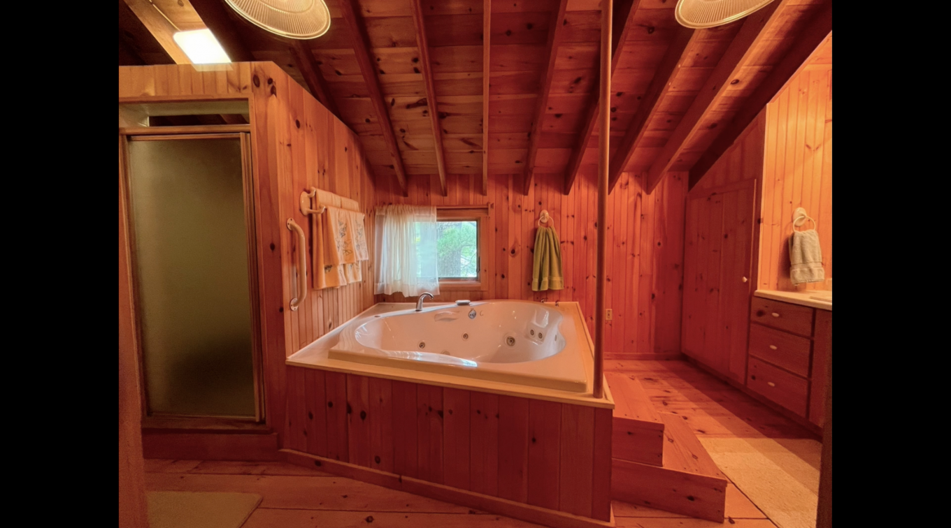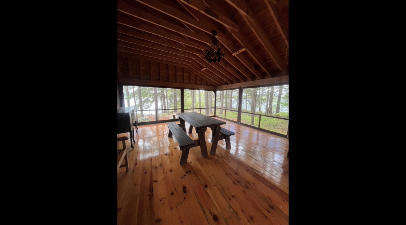 The main house has spectacular lake views from every room except the first-floor bathroom. The great room features adjacent screened porch with chandelier lighting, while the master suite has a heated two-person jetted hot tub and walk-in closet. The island is powered by mainland electricity delivered through an underwater transmission cable, with a 12,000+ watt auxiliary generator for backup power during outages. The main house is heated and air-conditioned by a five-ton HVAC with a four-zone Honeywell system, and it also features a central brick fireplace with hearth and auxiliary heating.