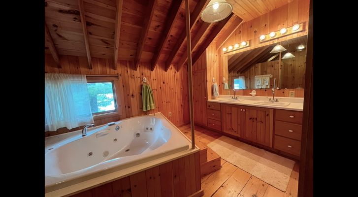 The buildings on the island are typical New Hampshire lake house style that were recently reconstructed and upgraded with modern amenities while maintaining their original 1920s exterior design to preserve privacy and anonymity. The interior of the main house is custom constructed, featuring knotty pine bead board and wide pine flooring, with modern upgrades such as a walk-in closet, walk-in shower, and large jetted hot tub in the master suite. The sanitary waste disposal system was upgraded and designed to satisfy the needs of a six-bedroom home, and everything was done with a permit as New Hampshire has environmentally restrictive regulations.