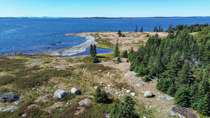 FOG ISLAND - A remarkable 55± acre island with 6,900'± of shoreline just off the east side of Isle au Haut. Despite the absence of a dock, the island is readily accessible with multiple potential landing spots. About one-quarter of the island is an open moorland featuring a freshwater (brackish) pond. A small flock of sheep has called Fog Island home for many years, adding to its unique character. The island offers sweeping western views across Isle au Haut and northeast toward Mount Desert Island. Natural features include rugged shoreline, gravel beaches, well-kept paths, a dug well, and a mooring. Conservation easements with Maine Coast Heritage Trust help preserve its natural beauty while allowing for residential use. The easements are relatively flexible, permitting construction of a home, guest house, barn, and other improvements. Situated in Jericho Bay, Fog Island provides convenient access to Stonington, Isle au Haut, and the surrounding islands of the archipelago. A rare opportunity to own a large, privately held Maine island with character, history, and possibility.