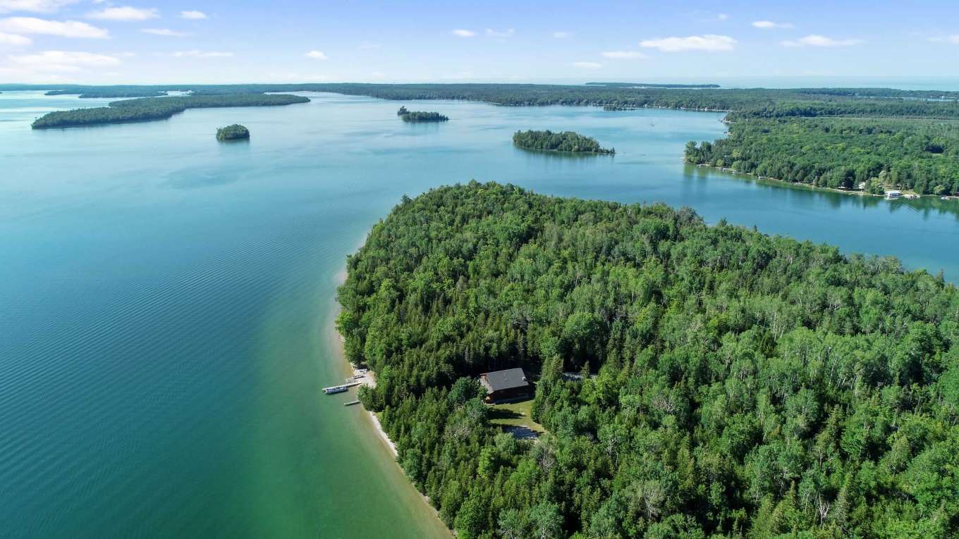 Here is a rare opportunity to own your private 48 acre island in Grand Lake with a 3000 sqft main home and 2 guest cabins plus 30x40 pole barn and 50’ waterfront access lot on the mainland. Soak up nature’s serenity on the many hiking trails and catch glimpses of the deer bald eagles turkeys songbirds and other wildlife that call the island home. Main home features expansive great room lofted family room 4 bedrooms 3.5 baths commer ...