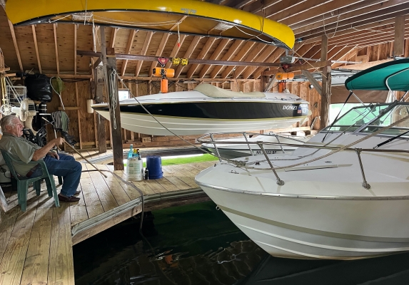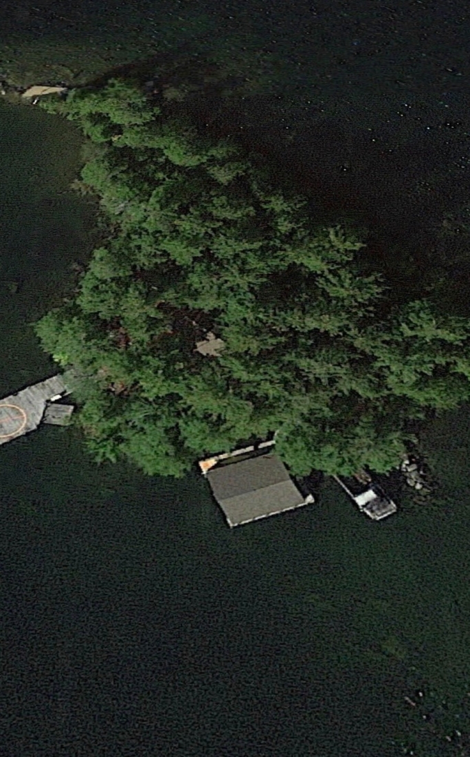 The BOATHOUSE is a 39x39 foot structure built on crib piers over the water, containing two 35-foot boat slips with electrically operated lifts, garage doors openers and remote controls. The boathouse has entry doors and windows, electricity, pressurized water, and interior and exterior lighting. The fifth structure on the island is a HELICOPTER LANDING DOCK, a 65-foot long by 26-foot wide crib type pier projecting off the southerly side of the island, constructed specifically as a helicopter landing pad with a windsock and electricity for landing lights.
