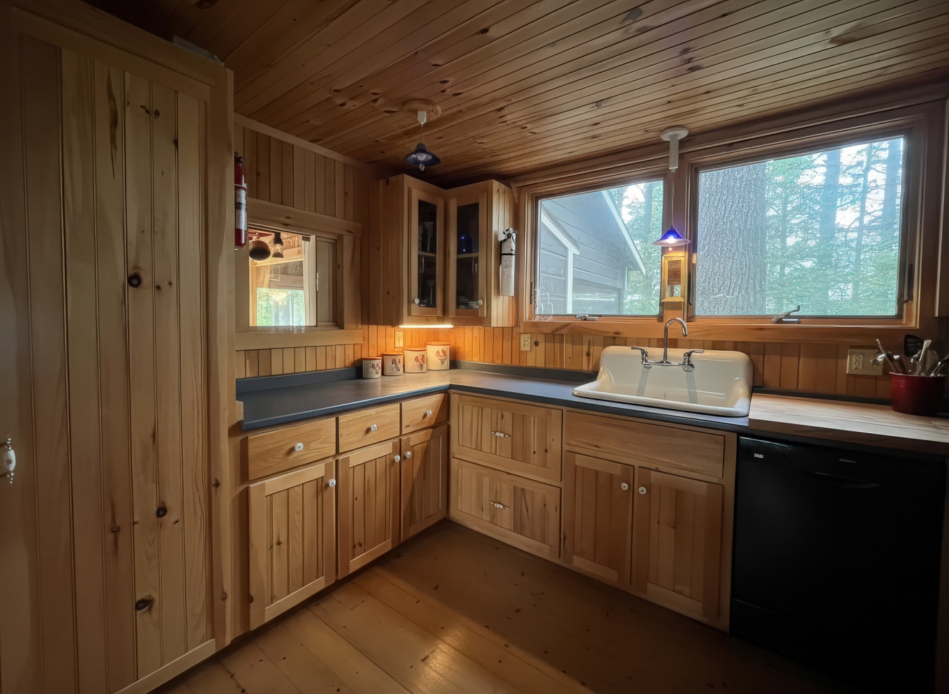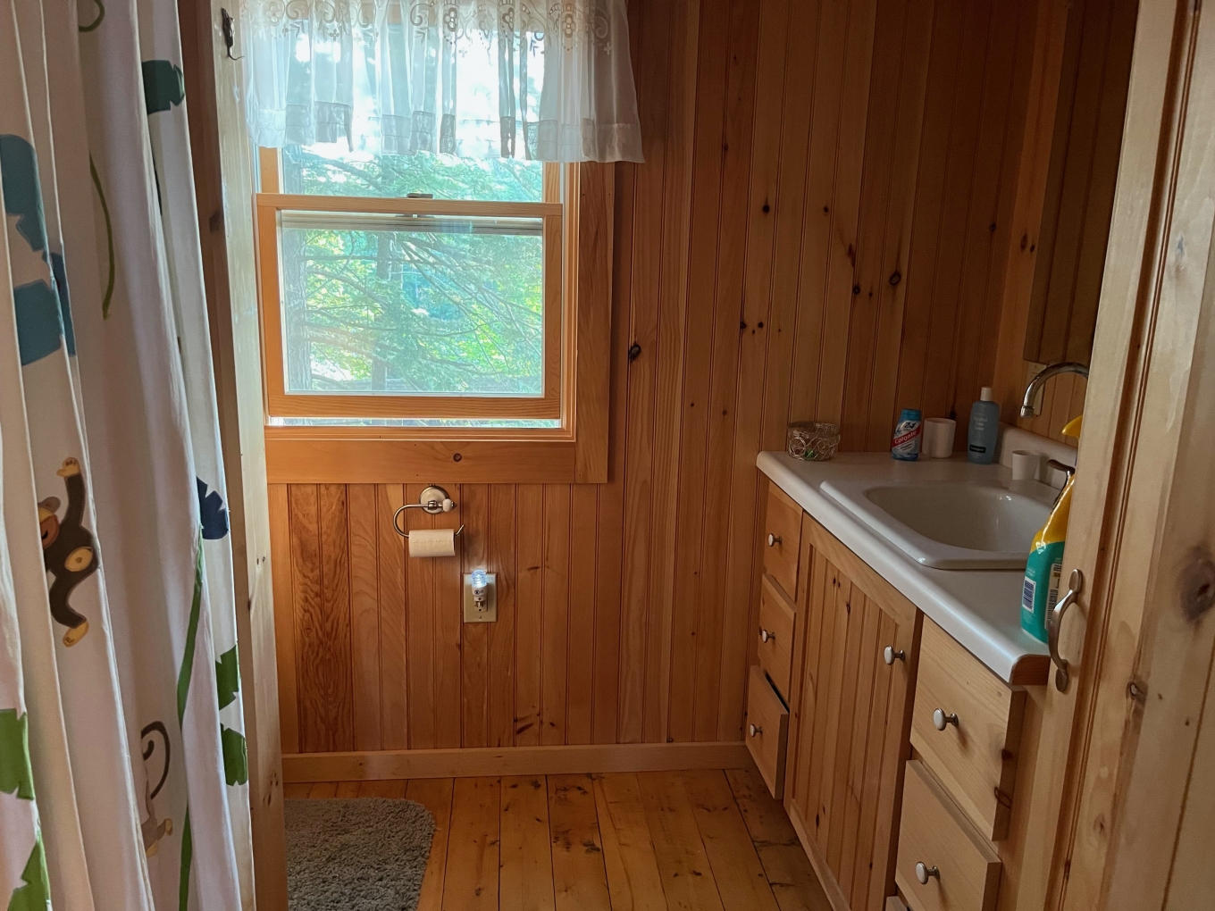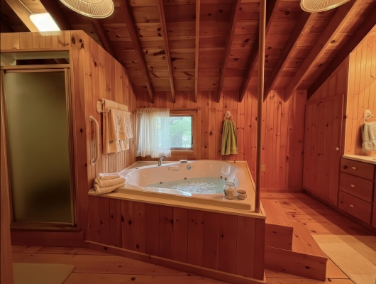 The buildings on the island are typical New Hampshire lake house style that were recently reconstructed and upgraded with modern amenities while maintaining their original 1920s exterior design to preserve privacy and anonymity. The interior of the main house is custom constructed, featuring knotty pine bead board and wide pine flooring, with modern upgrades such as a walk-in closet, walk-in shower, and large jetted hot tub in the master suite. The sanitary waste disposal system was upgraded and designed to satisfy the needs of a six-bedroom home, and everything was done with a permit as New Hampshire has environmentally restrictive regulations.
